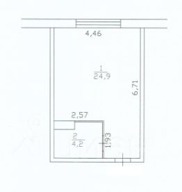 Квартира общей площадью 29,1 кв. м. расположена на 3-ом этаже, зонирована и подходит для комфортного проживания. Панорамное окно со стеклопакетами открывает вид во двор, наполняя пространство естественным светом. Большой совмещенный санузел площадью 4.5 кв.м. с душевой кабиной отделан плиткой. В прихожей встроенный шкаф, который входит в стоимость.