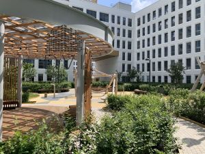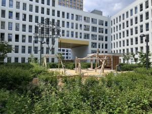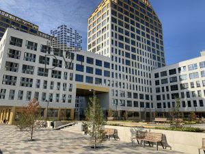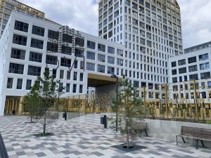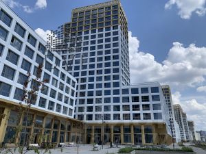 Жилой комплекс и сам дом являются доминантой намывной территории. Рядом будет построен гипермаркет, выход станции метро "Морской фасад", фитнес-клуб "Спортлайф". Планируется активное развитие инфраструктуры района. Шкиперская развязка на ЗСД позволяет быстро добраться в любую часть города, дорога до аэропорта займет всего 40 минут.