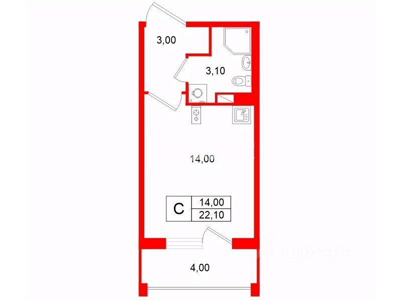 - Общая площадь 20,1 м2, жилая — 14 м2. Площадь указана без учета лоджии. Пространство позволяет реализовать любые дизайнерские идеи и расставить мебель с максимальным удобством.