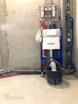 Выполнены частичные работы по ремонту. Выполнена сантехническая разводка, включая канализацию. Сделан вывод на кухню хвс, гвс, канализация. В ванной комнате - разводка для раковины, душа, включая слив, инсталяция для унитаза, установлены фильтры воды.