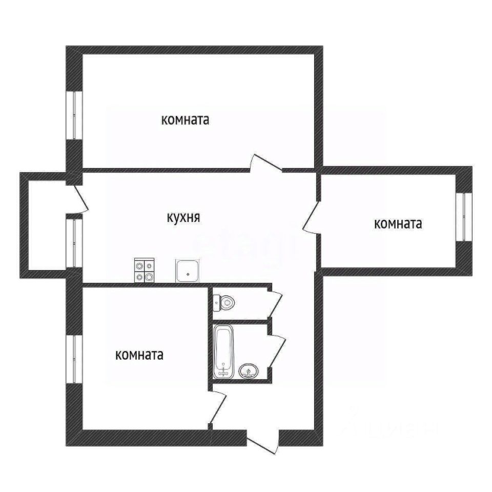 Квартира очень теплая, с просторными изолированными комнатами площадью 14,4, 14,3 и 17, 3 кв.м и большой кухней!