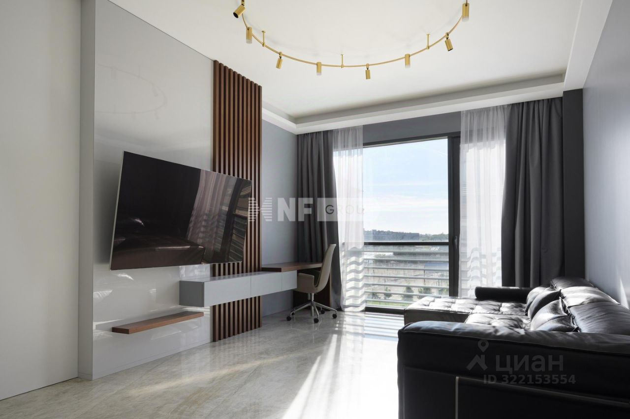 Лот: 97784. Редкое предложение в доме премиум-класса на Крестовском острове. Стильная квартира с новым дизайнерским ремонтом, высокими потолками, панорамными окнами в пол и полной меблировкой.