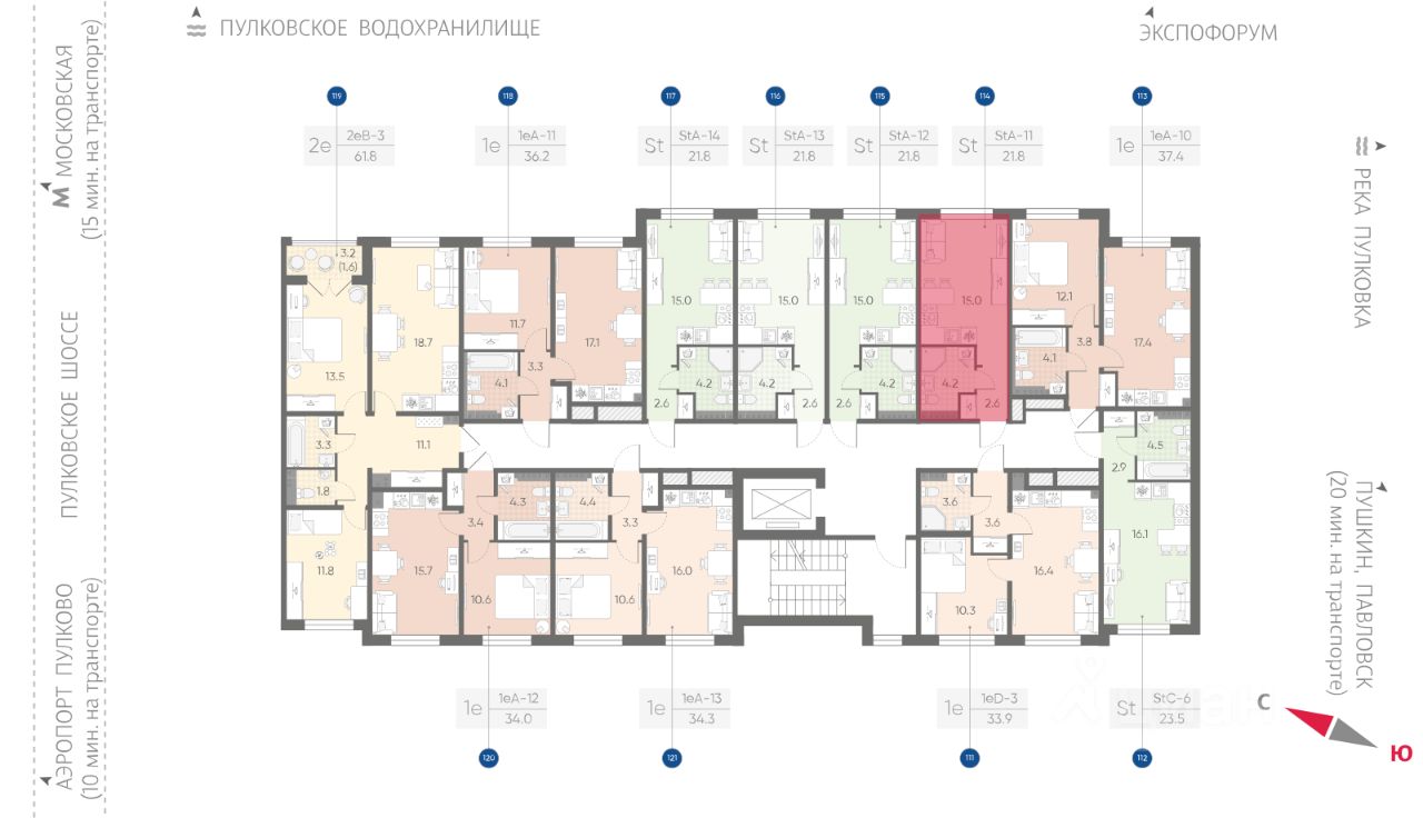 Дома высотой всего 4 этажа, квартиры от уютных студий до трехкомнатных квартир для большой семьи. Широчайший выбор планировок, включая квартиры с мастер-спальнями, патио, каминами, саунами, двухуровневые квартиры. Школа, детские сады, парк на берегу озера и выезды на Пулковское и Петербургское шоссе.