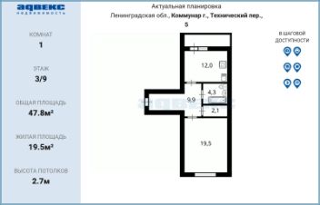 Квартира находится на третьем этаже в современном ЖК Надежный.