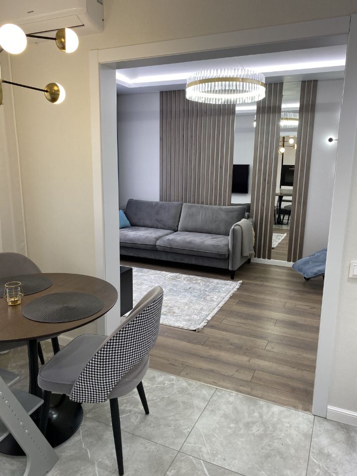 В шестых, большая и комфортная кухня-гостиная со всей необходимой техникой: индукционная плита, духовой шкаф, посудомоечная машина, встроенный холодильник, винный шкаф, вытяжка