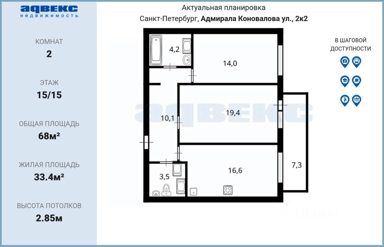 Продается двухкомнатная квартира на ул. Адмирала Коновалова, д. 2-4, в 20 минутах от метро "Ленинский пр.". Новый ЖК "Жемчужный фрегат" (2015 г.п.). Прямая продажа видовой 2-х комнатной квартиры на 15-м этаже. Общая площадь квартиры 68 кв.м, комнаты 19.4+14 кв.м, кухня 16.6 кв.м. Раздельный санузел. Застекленная лоджия 7.3 кв.м с отличным видом. В квартире выполнен качественный ремонт. Мебель и техника остается новым собственникам. Кондиционеры в комнате и на кухне. Документы готовы к продаже. Квартира без обременений, мaт. капитaл нe использовался, в квартире никто не зapегистpирoвaн. Закрытая территория двора. Грузовой и пассажирский тихие лифты ОТIS. Видеонаблюдение по всей дворовой территории и по периметру дома. Район с развитой инфраструктурой. В шаговой доступности школа, детский сад, ТРК "Жемчужная Плаза". Удобный выезд на КАД. До Петергофа, Пулково на машине 20 минут. В шаговой доступности два парка Южно-Приморский и Новознаменка. До набережной Финского залива 15 минут пешком. Один взрослый собственник. Собственность более 5 лет. Просмотры по договоренности. Звоните.