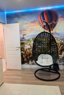 Интерьер квартиры выполнен по дизайнерскому проекту, благодаря чему пространство выглядит стильно и современно. Раздельный санузел добавляет дополнительное удобство для большой семьи или гостей.