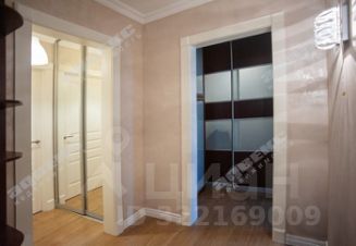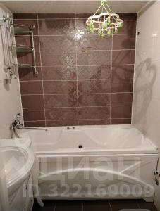 Угловой диван, прихожая со шкафами-купе, мебель в ванной.