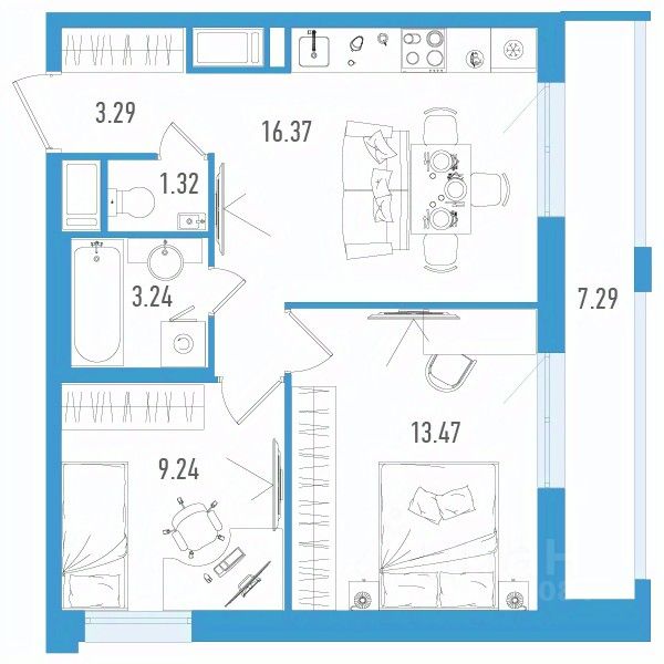 Продаётся 2-комнатная квартира в строящемся доме (Дом 1), срок сдачи: I-кв. 2027, общей площадью 49.12 кв.м., на 17 этаже. Жилой комплекс комфорт-класса "Старлайт" возводится в Красногвардейском районе Санкт-Петербурга в 300 метрах от берега реки Охта у Новоохтинского парка. Это зеленый активно развивающийся и благоустраиваемый квартал Петербурга, где природный ландшафт идеально сочетается с хорошей транспортной доступностью и развитой, сложившейся инфраструктурой.