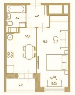 Удачное планировочное решение кухня 10,3 кв.м и комната 15,2 кв.м. отличный вариант для семьи или сдачи в аренду.