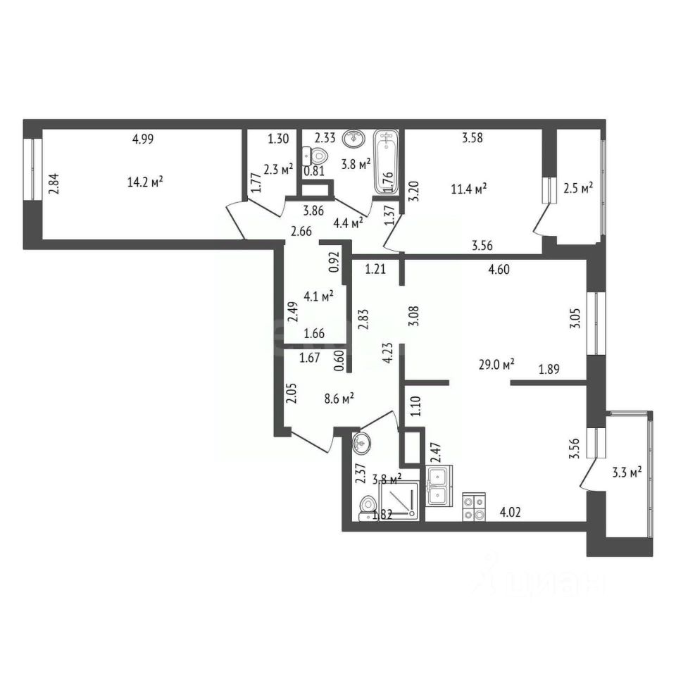 площадью 81.6 квадратных метра в первом корпусе нового жилого комплекса iD Svetlanovskiy.