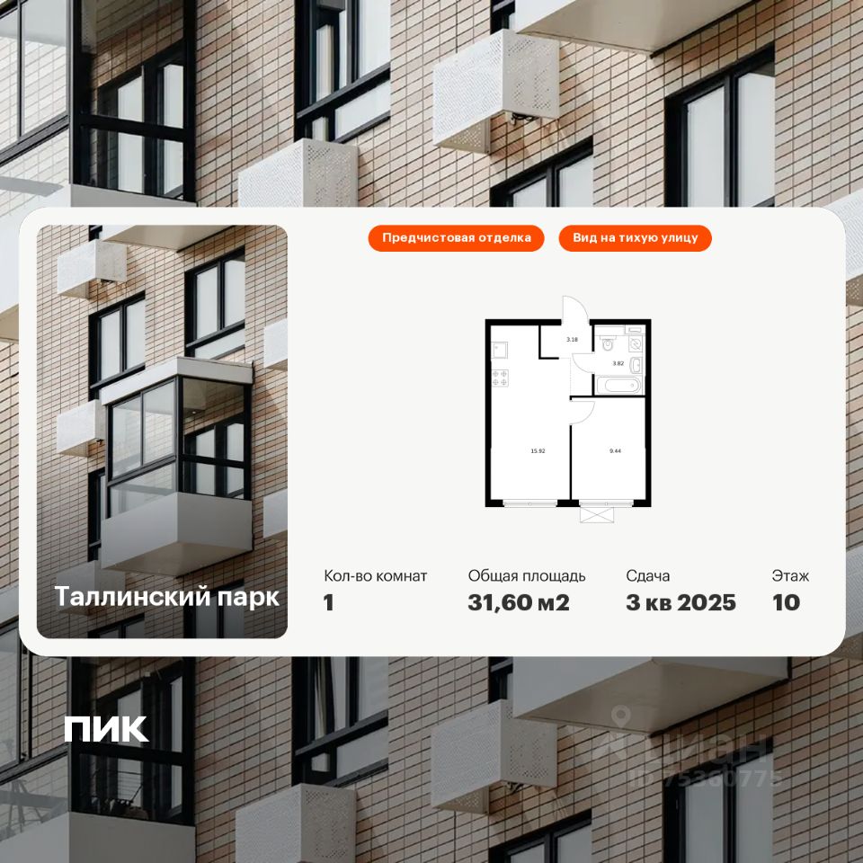 Продаётся 1-комн. квартира площадью 31,6 кв.м на 10 этаже 12 этажного дома (Корпус 3.1, Секция 4) проекта ПИК Таллинский парк. Светлый просторный подъезд на уровне земли, функциональная планировка, большие окна, предчистовая отделка.