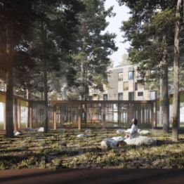 доступны для удобства резидентов в круглосуточном формате. Комплекс строится с сохранением природного ландшафта, корпуса утопают в соснах.