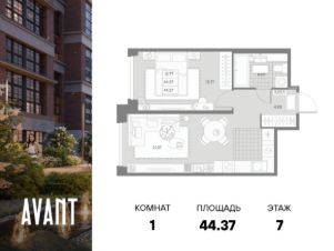 В историческом центре с особой атмосферой Петроградской стороны представлена 1-комнатная квартира на 7 этаже общей площадью 44.37 кв.м.