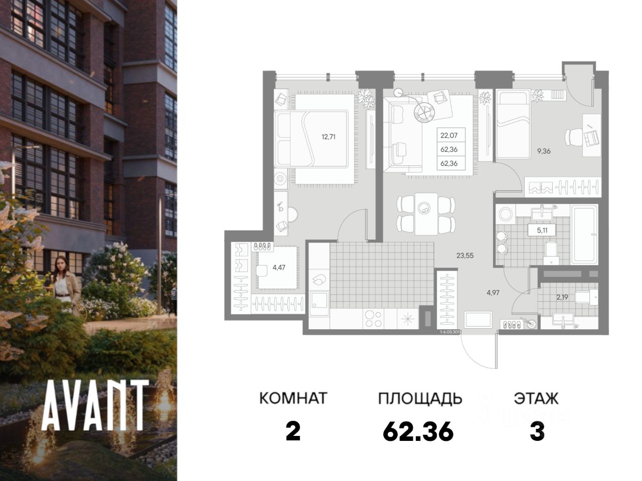 В историческом центре с особой атмосферой Петроградской стороны представлена 2-х комнатная квартира на 3 этаже общей площадью 62.36 кв.м.