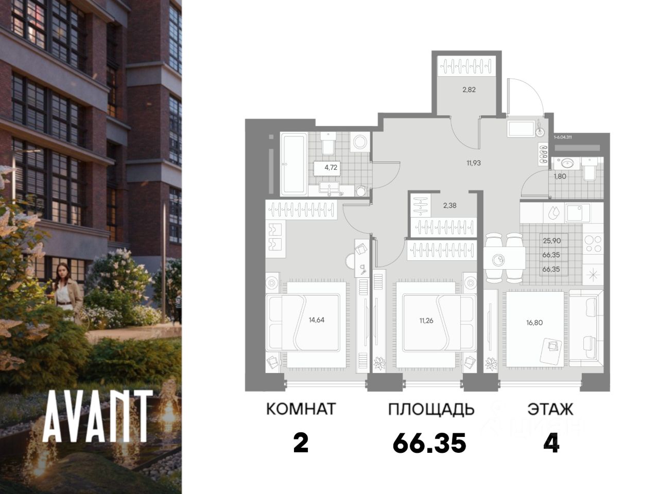 В историческом центре с особой атмосферой Петроградской стороны представлена 2-х комнатная квартира на 4 этаже общей площадью 66.35 кв.м.