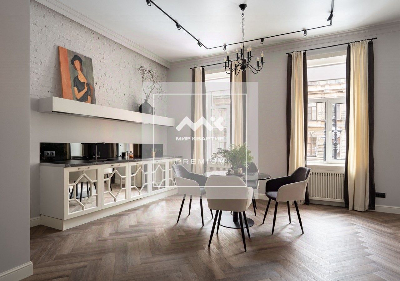 Арт. 117250977 Эксклюзивная квартира в элегантном и лёгком стиле на красивой тихой улочке, примыкающей к Невскому проспекту. Дамы и господа, счастливы представить Вам квартиру для искушённой пары или же "утомлённого богача". Да, здесь всего одна спальня, но находясь в квартире, не возникает ощущения, что пространство использовано "нерационально".. Этот воздух, эта свобода, эта высота потолков создают совершенно неповторимую благородную атмосферу, подчёркнутую непререкаемым качеством исполнения интерьера. Вкупе с восстановленной кирпичной кладкой, огромными окнами, за которыми на соседнем фасаде возвышаются античные атланты, вкупе c бережно отреставрированным старинным шкафом (реликвией семьи, владеющей этой квартирой без малого 90 лет), пространство обретает душу, историю, индивидуальность, характер. Тот самый характер, который ставит наш город на недосягаемый пьедестал. Вход в парадную - с тихой, зелёной Пушкинской улицы. Удобный лестничный марш приведёт Вас на высокий барский второй этаж, на котором и расположилась эта квартира. Техника, освещение и мебель, выбранная и созданная людьми для людей, подарят Вам полноценный отдых и освободят от рутинных, набивших оскомину действий. В этой квартире Вам захочется приготовить завтрак для любимой, сварить кофе в старой медной турке или с удовольствием растянуться на низеньком мягком диване. Да, это квартира! И отличная квартира. Но эта квартира не оставляет равнодушным. Это не квадратные метры, это эмоция, это праздник, который будет всегда с тобой. А для людей рациональных, привыкших к конкретике, это - эталонная "пиджачная квартира" - идеальный вариант для тех, кому нужен минимум по максимуму. Дождливая осень. Каноническая Петербургская погода. А ведь есть люди, находящие в этом дожде и пронизывающем ветре наслаждение! Нонсенс. Мягко ткнувшись, Сапсан останавливается у платформы Московского вокзала. Вы ступаете на эту загадочную, неприветливую, но чертовски притягательную землю северной столицы. Такси или пешком? Конечно, такси, ведь такой дождь.. Но почему-то действуете нерационально и делаете шаг из-под козырька вокзала в направлении пешеходного перехода. До Вашей петербургской квартиры тут 5 минут пешком, но за это время Вы промокаете насквозь.. Захлопнув за собой входную дверь, Вы ругаете себя за это ребячество. Но открыв кран с горячей водой в ванной и добавив в чай ложку коньяку, вы сбрасываете остатки намокшей одежды, заворачиваетесь в махровый халат. Достаёте полученную в подарок год назад пластинку, ставите её в проигрыватель рядом с уютнейшим глубоким диваном. Музыка наполняет эту роскошную гостиную и Вас в ней. Взгляд Ваш скользит от Модильяни к этому старинному шкафу, в стёклах которого отразились уже зажёгшиеся уличные фонари и капли дождя в их свете. Вы подходите к одному из этих огромных высоких окон. Смотрите на эту невероятную архитектуру, на это уже иссиня-чёрное небо, слышите эту прекрасную музыку, чуть подпевая ..Old dream maker, you, heart breaker, wherever you're
