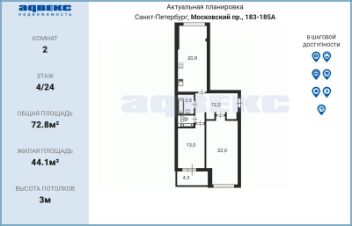 - Квартира расположена в средней части жилого комплекса, между Московским проспектом и Варшавской улицей, что делает вас более свободным в выборе путей передвижения, но при этом защищает от шума и пыли дорог.