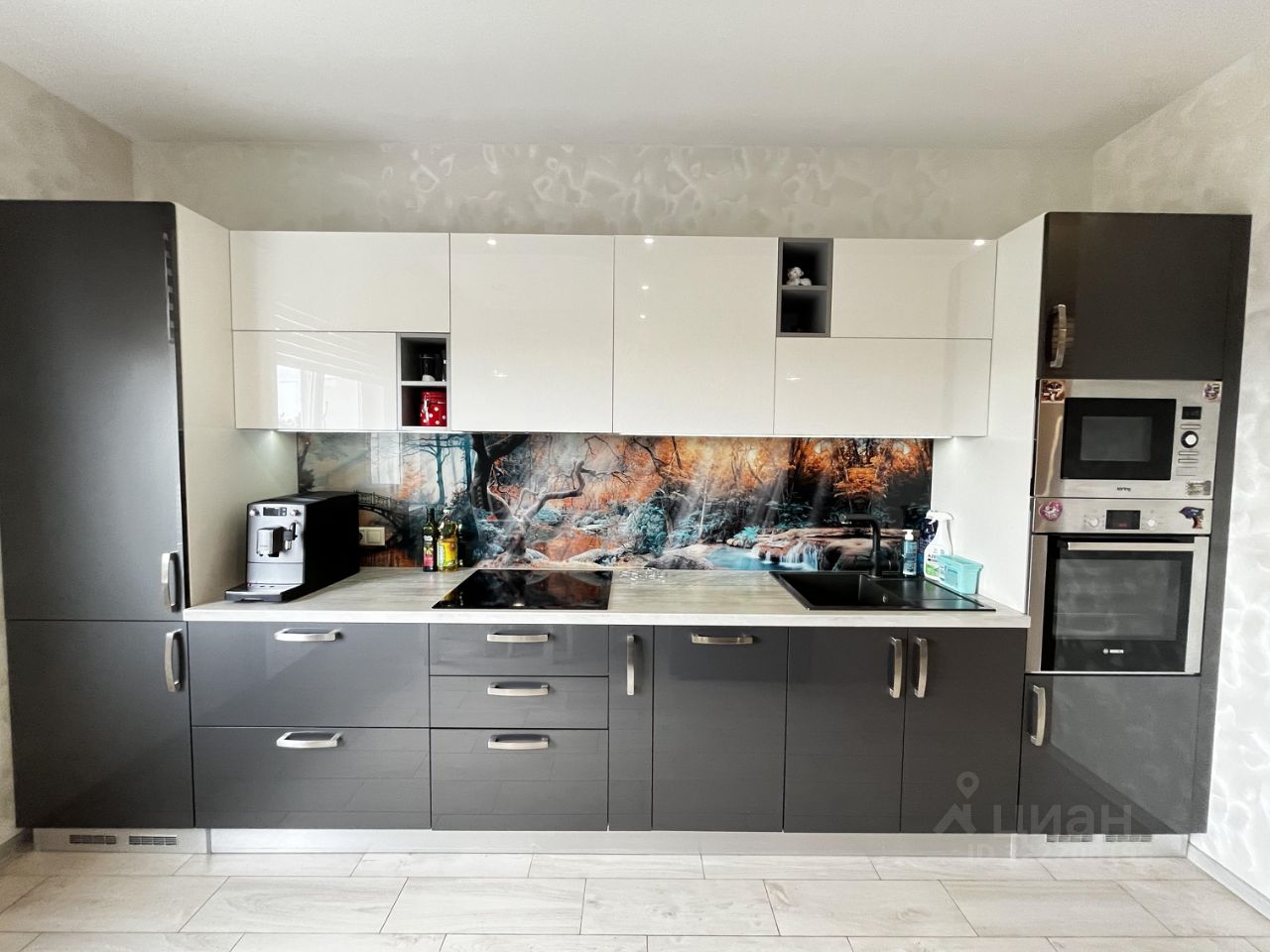 - полы керамогранит с подогревом по площади всей кухни;