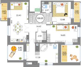 Продаётся e3 комнатная квартира (евро) в жилищном комплексе Modum (Корпус 2 секция 16). Общая площадь 100.05 кв. м, площадь комнат 12.68+16.85 кв.м. 2 санузла. Квартира расположена на 10 этаже 12 этажного дома. Сдается с отделкой White-box.