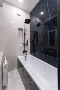 Полноценная ванна, вся сантехника и фаянс установлены новые. Керамогранит, тёплые полы.