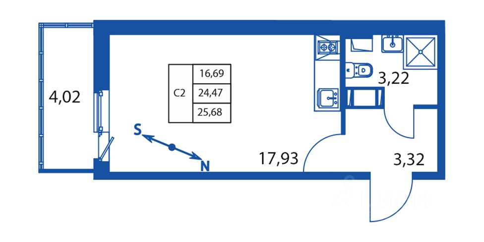 Прямая продажа от застройщика! Готовая Студия 23.9 кв.м с чистовой отделкой на 3 этаже в сданном ЖК "Полис Лаврики".