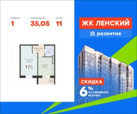 В продаже квартира площадью 35.05 кв. м с отделкой white box на 11 этаже 16 этажного дома. Квартира находится в 4834 корпусе: