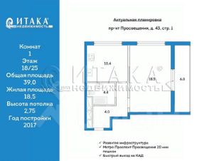 ***Площадь квартиры 39 кв.м. без учёта лоджии 6 кв.м. Квартира с большой жилой комнатой 18,5 кв.м. с выходом на шикарную лоджию с панорамным остеклением!