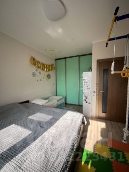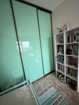 В комнате шкаф-гардеробная с системой хранения ИКЕЯ.