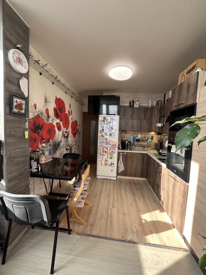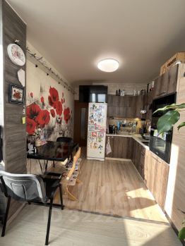 Кухня увеличена до 14 кв. м за счет присоединения лоджии (8+6 кв.м).