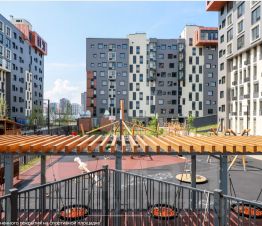 Территория ЖК закрыта двор без машин, всего 303 квартиры ,есть охрана, на этаже пять квартир, окна спальни выходят во двор, кухня-гостиная на улицу. На территории муниципальный детский сад. Квартира очень солнечная много окон.