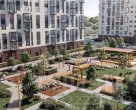 Игровые площадки, зоны отдыха и воркаута предполагаются как на территории свободных от транспорта дворов, так и на территории квартала. Большой пешеходный бульвар объединит центральную площадь, сквер и игровые площадки для детей.
