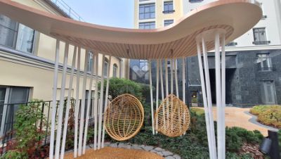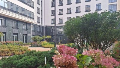 Территория ЖК закрыта от посторонних, во внутреннем камерном дворе благоустроенный сквер, качели, перголы для отдыха и детская площадка.