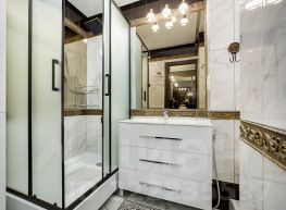 Общая площадь совместно со вторым этажом составляет 50 кв. м, хотя по документам площадь квартиры 38,5 квм. Высокие потолки 4,5 метра создают ощущение простора и легкости, а также дают возможность сделать 2-й этаж с полноценной спальней.