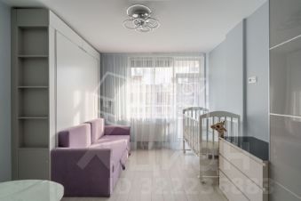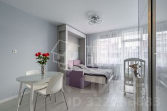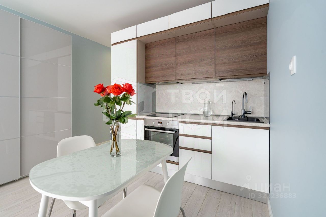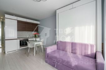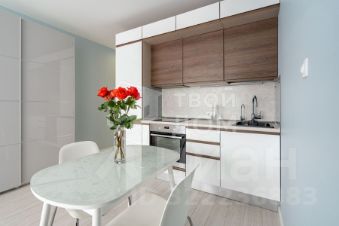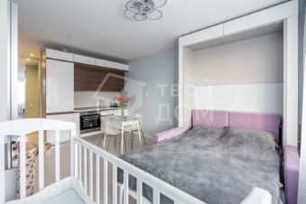 - Оборудованная кухня с встроенной техникой (духовой шкаф и варочная поверхность), шкаф-кровать (трансформер), в санузле застекленная душевая кабина на подиуме, гигиенический душ