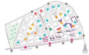 Общественные пространства жилого комплекса благоустроенны и закрыты от посторонних. Во дворах, холлах и лифтах установлено видеонаблюдение, в каждом доме есть собственный пост охраны. На первых этажах домов находятся коммерческие помещения. Дворы разделены на несколько функциональных зон: детские игровые комплексы, спортивные площадки с воркаут и пространство для спокойного отдыха. Для автовладельцев предусмотрен подземный паркинг с прямым доступом на лифте.