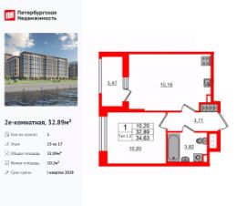 Удобная, классическая, функциональная европланировка, большая кухня-гостиная 15.16 м², вместительная прихожая 3.71 м². Общая площадь квартиры - 32.89 м², жилая 10.2 м², высота потолка 2.77 м.