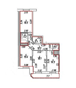Площадь: 87 м² (3 комнаты + просторная кухня-столовая 18,1 м²)