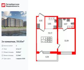 Удобная, классическая, функциональная европланировка, вместительная прихожая 3.02 м². Общая площадь квартиры - 39.05 м², жилая 12.54 м², высота потолка 2.77 м.