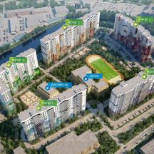 Дом находится вблизи реки Охты, где оборудованы пешеходные зоны с местами для отдыха и прогулок!
