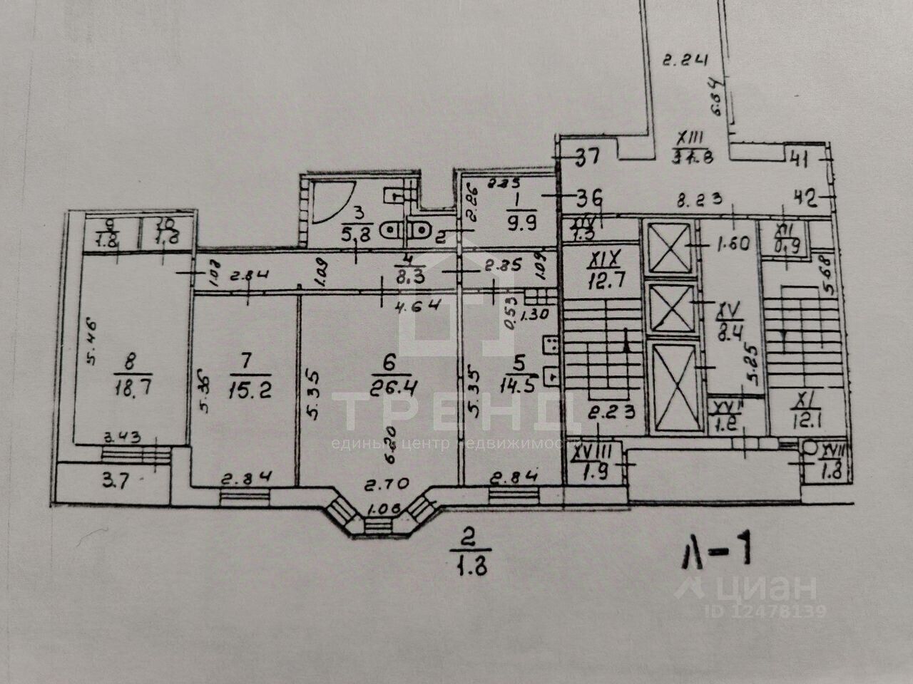 * Зал (26.4 м²), Комнaта 1 (18.7 м²), Комнaта 1 (15.2 м²);