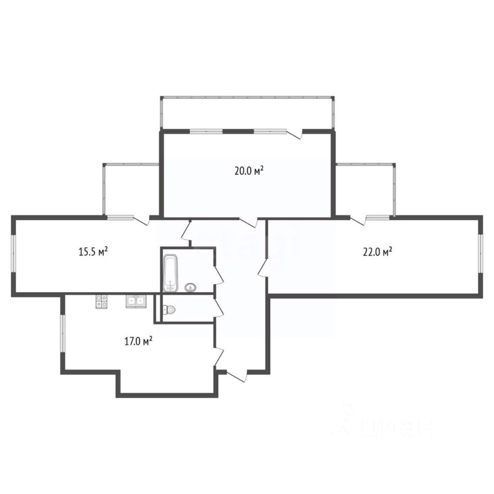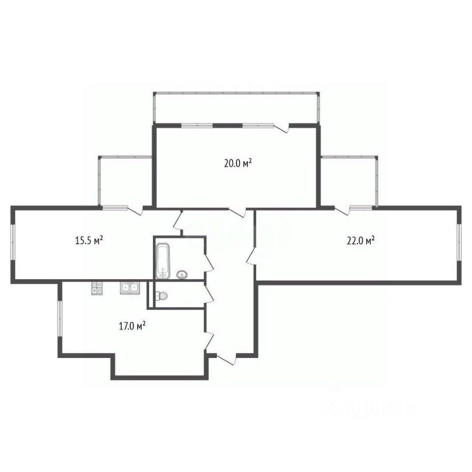 Общая площадь: 89,7 кв.м