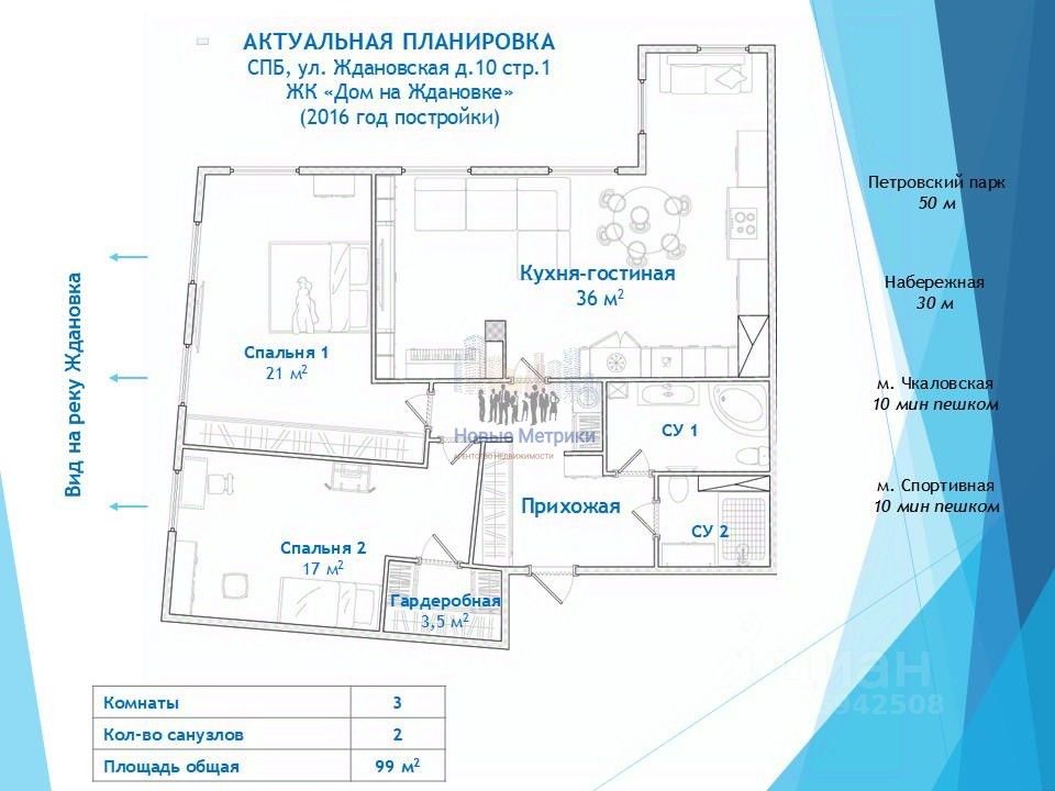 В продаже - трехкомнатная квартира с европланировкой ЖК "Дом на Ждановке" построен группой компаний "ЭкоИнвест" в Петроградском районе Петербурга.