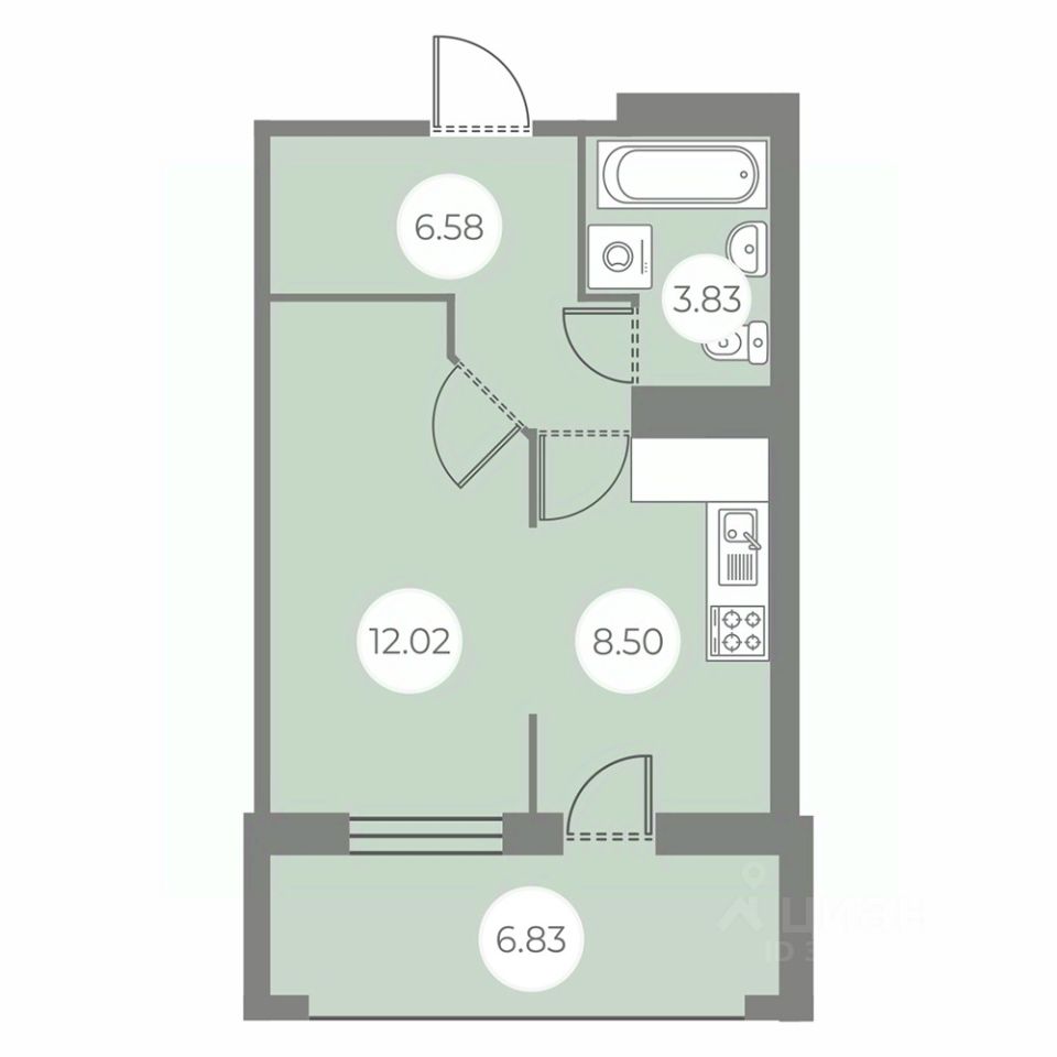 Общая площадь34,35 м²