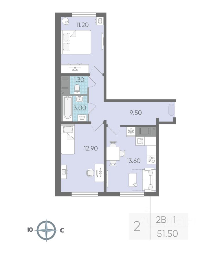 Продается 2-комнатная квартира в ЖК "ЛСР. Ржевский парк" на 16 этаже. Общая площадь составляет 51.40 кв. м. Квартира с чистовой отделкой. Жилой комплекс "ЛСР. Ржевский парк" располагается по адресу Ленинградская область, Всеволожский район, Ковалёво пос..