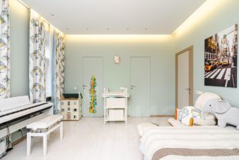 Функциональная планировка состоит из просторной кухни-гостиной, пяти комнат -трех изолированных спален с гардеробными и санузлами, кабинета, игровой комнаты, хоз блока.