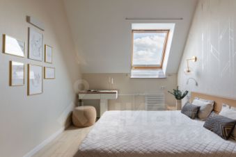 — спальня с видом на небо сквозь окна крыши,