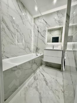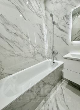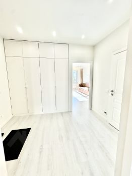 В санузлах и на лоджии премиальный крупноформатный керамогранит , теплые полы, смесители Hansgrove . Вместительный шкаф по индивидуальному дизайн-проекту .
