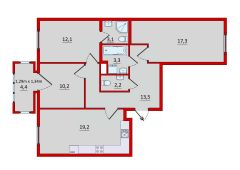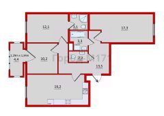 Квартира с подчистовой отделкой".Высота потолков 3 метра. Панорамные окна "в пол" с французскими балконами делают квартиру светлой, просторной. Расположение квартиры на две стороны и интересная планировка условно делят ее на две зоны: общую и приватную. В первой располагаются: просторная прихожая, санузел, помещение ванной, большая гостиная с окном на улицу. В приватной зоне: кухня-столовая, мастер-спальня с собственным санузлом. В спальне можно разместить личный гардероб. Рядом кабинет (или детская) с балконом. Окна комнат во двор.
