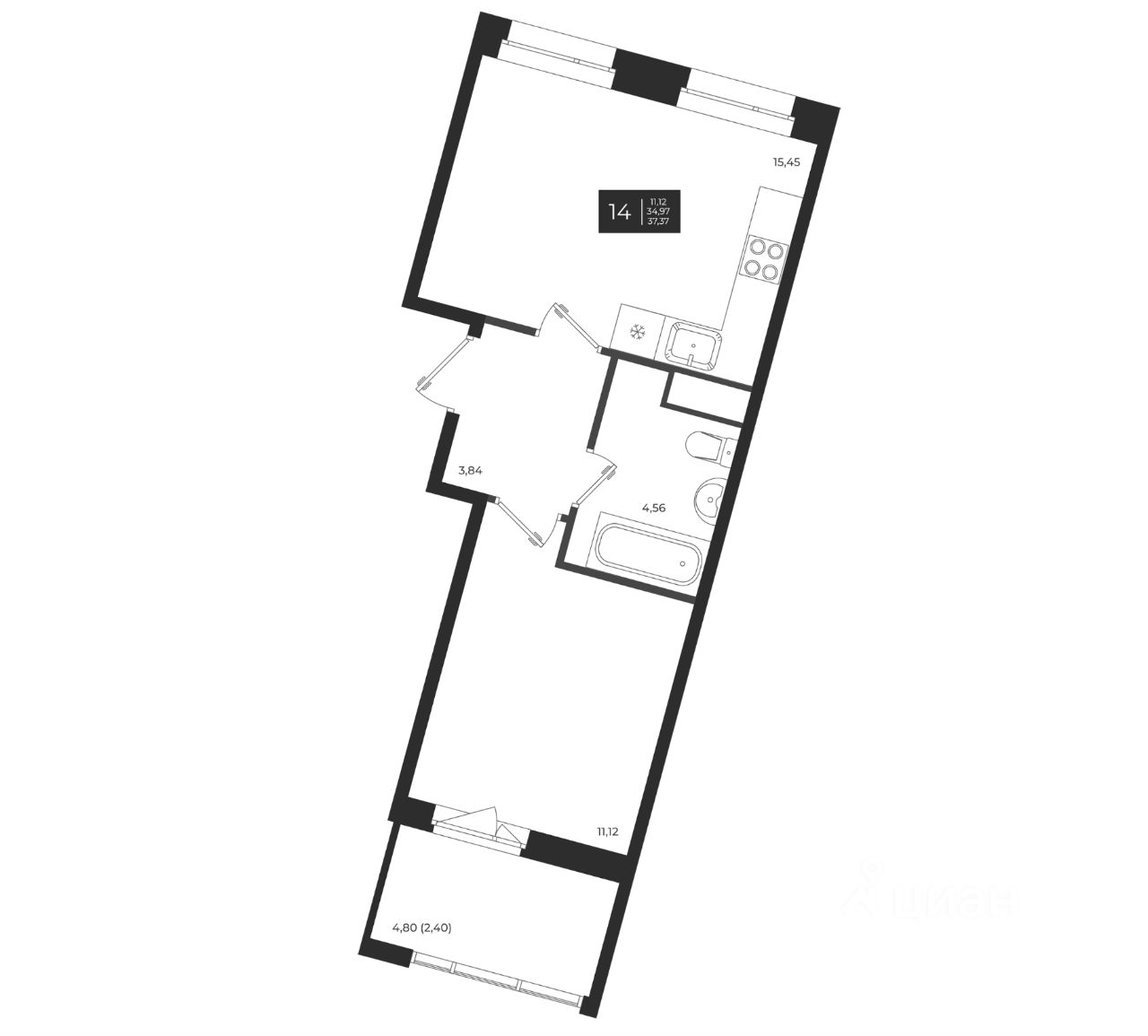 Продается по переуступке 1 комнатная (Евро планировка) в 1 очереди ЖК "Новатория" в п. Новоселье.